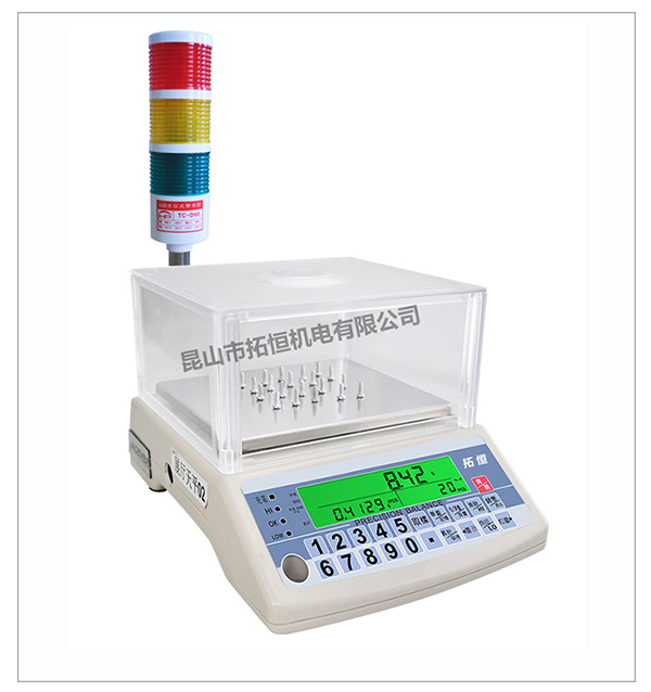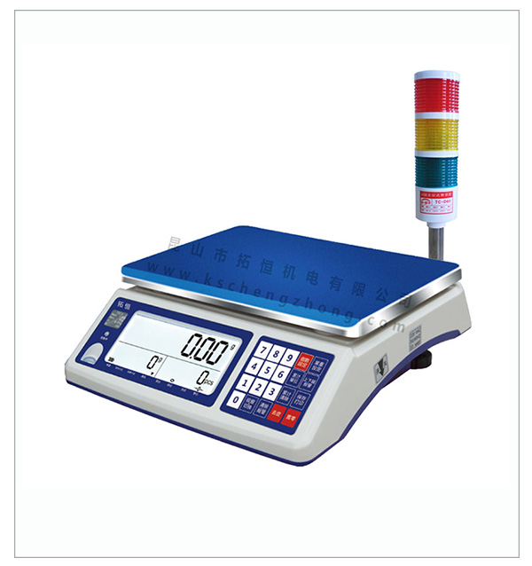 由拓恒公司提供的TH7370系列报警电子天平对货品进行称重判别;系统根据设定的上下限值,自动判别出货品的重量是否合格、包装箱内货品的数量或配件是否漏装或多装;如果货品超出或低于设定范围,系统自动声光报警(超限红灯亮,低限黄灯亮,OK绿灯亮);具有准确度高,称量迅速,工作稳定可靠,维护简单等特点;